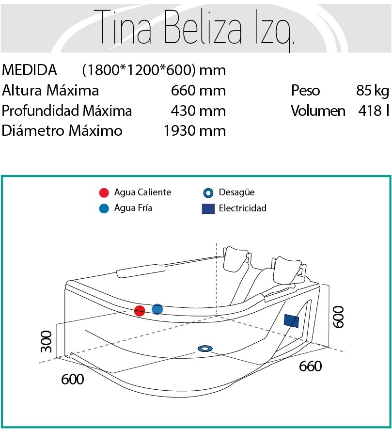 Tina Hidromasaje Beliza Izquierda